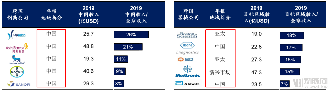 从营收角度,也可看出本土器械企业生存环境良好。跨国药企在中国业绩较强势,例如:辉瑞普强、阿斯利康的中国区总收入分别达到全球总收入的26%和21%。反观跨国器械公司,中国区业务占其业务比重较小,甚至部分器械公司未单独披露中国区收入,仅是作为亚太区或者新兴市场的一部分合并披露。跨国器械巨头中,海通证券估计美敦力中国区收入占比不到10%(新兴市场收入占比15%)。