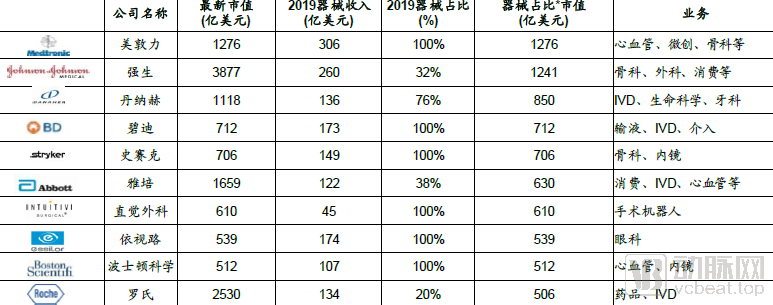 全球市值TOP10器械企业,主营业务也都集中在心血管、骨科和IVD等领域,这也印证了大赛道容易出大市值公司的观点。