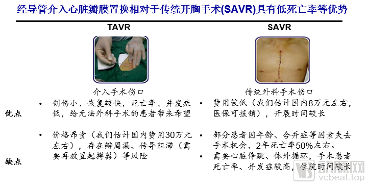 PCI(经皮冠状动脉介入治疗)是微创介入治疗的代表,让病人告别了传统开胸搭桥手术的风险和痛苦。经导管介入心脏瓣膜置换也是一种微创介入治疗方式,相比于传统开胸手术,具有创伤小、患者恢复快、死亡率与并发症发生率低等优势。