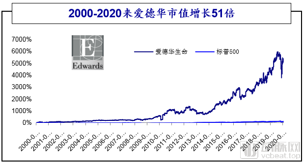 爱德华生命科学2007年以前主营心脏瓣膜和心脏重症监护,公司发展的主要拐点发生在2007年,其颠覆式创新器械经导管心脏瓣膜Edwards SAPIEN在欧洲上市,此后公司进入发展快车道。随着二、三代经导管心脏瓣膜SAPIEN XT和SAPIEN 3的推出以及TAVR逐步拓展到中危重度主动脉瓣狭窄患者,公司经导管主动脉瓣收入爆发式增长,市值亦一路上涨。自2000年以来公司市值从8.5亿美元增长至439.9亿美元,实现了51倍的增长。爱德华生命科学的成功可以证明,微创介入治疗在国内也有着巨大的发展机会。