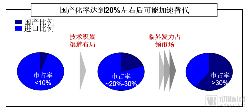 海通证券认为,某一种类器械若国产比例达到20%-30%后可能加速替代。