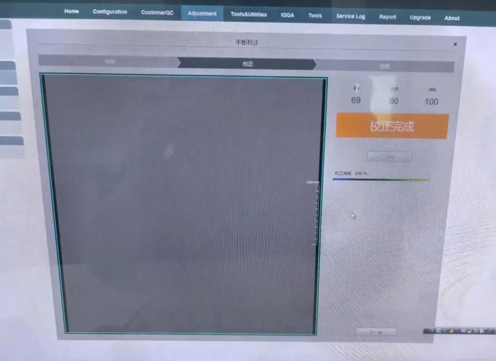 3. 第一步,直接点击界面上的曝光按钮进行曝光,目的是确认曝光位置是否在平板中间。确认位置无误后,进入第二步自动校准阶段,该过程大约需要 10 分钟。
