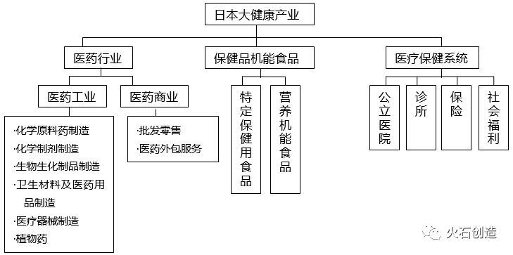 日本的大健康产业是集预防、诊断、治疗、康复等商品和服务部门的总称。通常包括医药行业、医疗保健系统、保健品行业以及社会福祉等领域。